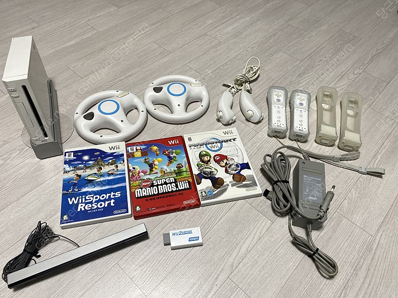 항상깨끗하고 좋은 물건으로 거래해왔습니다. 너무 싼 제품은 사기가 의심되니 저처럼 피해받지 말고 믿을 수 있는 판매자에게 사세요 ㅜㅜ =========================== 본체, 전원케이블 전부 정품이고 본 구성품과 아래 전부 포함. <2인용> 리모콘, 카트핸들(운전대), 눈차크, 모션플러스 <게임> 마리오브라더스, 마리오카트, 위 스포츠 <별도구매품> HDMI 연결 잭 게임 전부 다운로드 아니고 cd로 있음. 상태 너무 좋고, 빨리 치우고 싶은 마음에 저렴하게 올림. 👋🏻 가격 내림 안함. 기타 이유로 환불 x. 직거래우선. 택배비 별도. 네고는 없음.