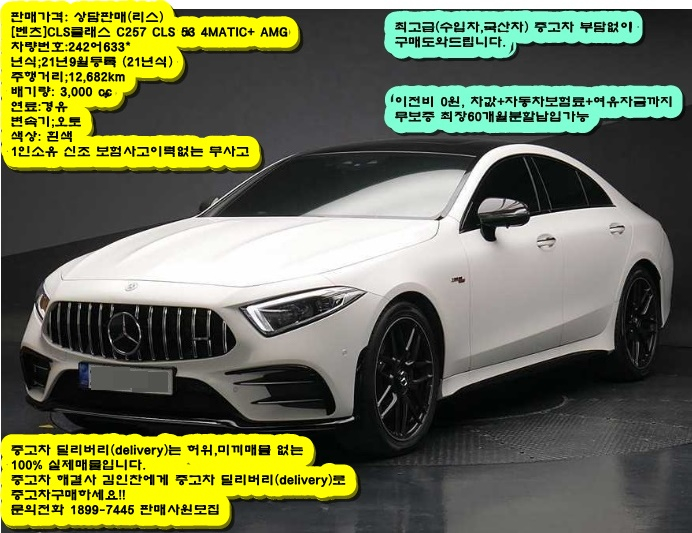 개인정보(거래정보)를 주고받는 행위는 사기에 노출될 수 있으므로 즉시 중고나라로 신고해 주세요최고급(수입차,국산차) 중고차 부담없이 구매도와드립니다. 이전비 0원, 차값+자동차보험료+여유자금까지 무보증 최장60개월분할납입가능 중고차 딜리버리(delivery)는 허위,미끼매물 없는 100% 실제매물입니다. 중고차 해결사 김인찬에게 중고차 딜리버리(delivery)로 중고차구매하세요!! 문의전화 1899-7445 판매사원모집