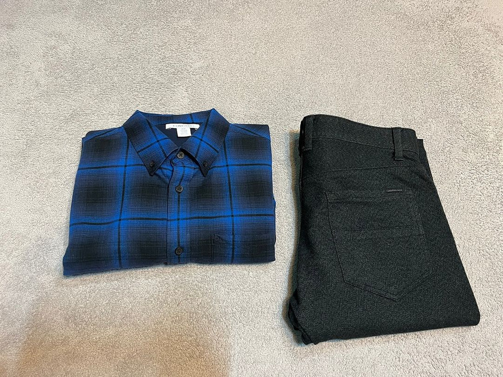 1. Ck 블루 플란넬 셔츠 사이즈m 국내100 정도 실측 총길이75 팔길이64 어깨45 가슴55 매장가 139000원 구매후 1회착용 가격 4만 2.CK 그레이 깅엄체크셔츠 사이즈M 국내100 정도 실측 총길이76 팔길이68 어깨45 가슴54 매장가139000원 구매후4-5회 세탁전이라 세탁비 뺴고 저렴히~ 가격 3.5만 3.CK 차콜그레이 팬츠 사이즈30 실측 총길이99 허리단면41 밑단통단면19 슬림 스트레이트 일자핏 매장가 159000원 구매후 1회착용 가격 5만 일괄구매시 12.5만이지만 1.5만 네고 해서 11만에 드려요 바지 새거가격도 안되는 가격에 셔츠2개 팬츠 총3장 가져가셔요 010 959육 955오