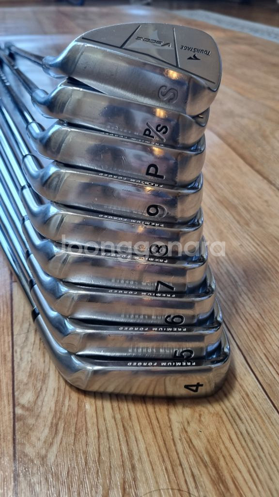국민아이언 투어스테이지 V300 3 경량스틸 9아이언세트 판매합니다. 4번부터 S까지 총 9개 아이언세트입니다. 사진처럼 상태 매우 좋습니다. 샤프트 R이며 그루브 상태도 좋아요.