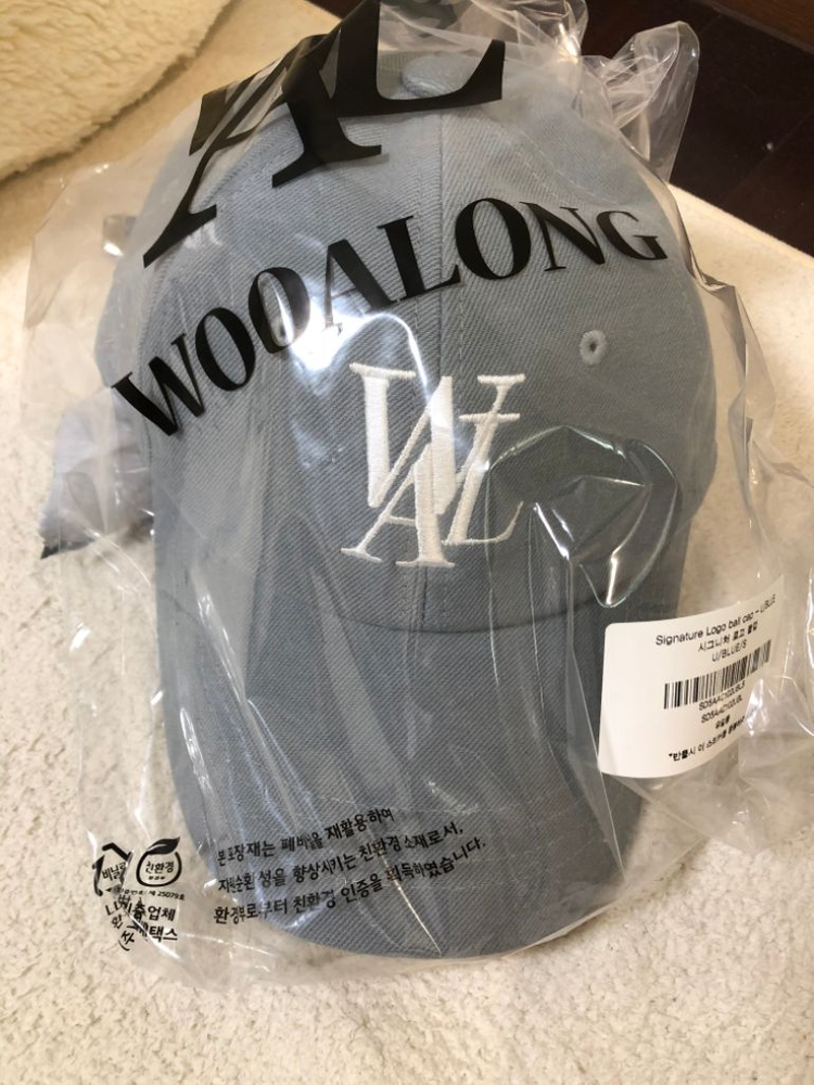 우알롱 시그니처 로고 볼캡 더스티블루 S입니다.