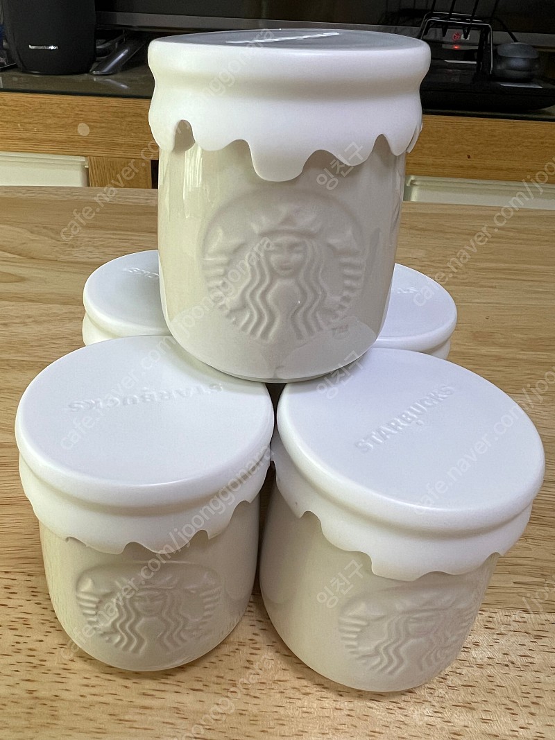 스타벅스 요거트 병 판매해요~~ 도자기병이라 이쁘고 귀여워요~ 요거트만 먹고 깨끗히 씻어 보관중이라 식품보관용으로 쓰셔도 되고 인테리어에 활용하셔도 이쁠거 같아요 ^^ 5개 일괄 택포 35000원 개당은 7000원 택착