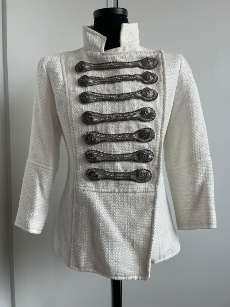 단추랑 규빅장식땜에 무게감이 살짝있지만 자켓은 얇아요~ 봄,가을에 입을수 있구요 소매는 손목쪼금위까지 옵니다 프리사이즈 입니다 55사이즈이신분이 제일 이쁘게 입을 수 있어 추천드립니다
