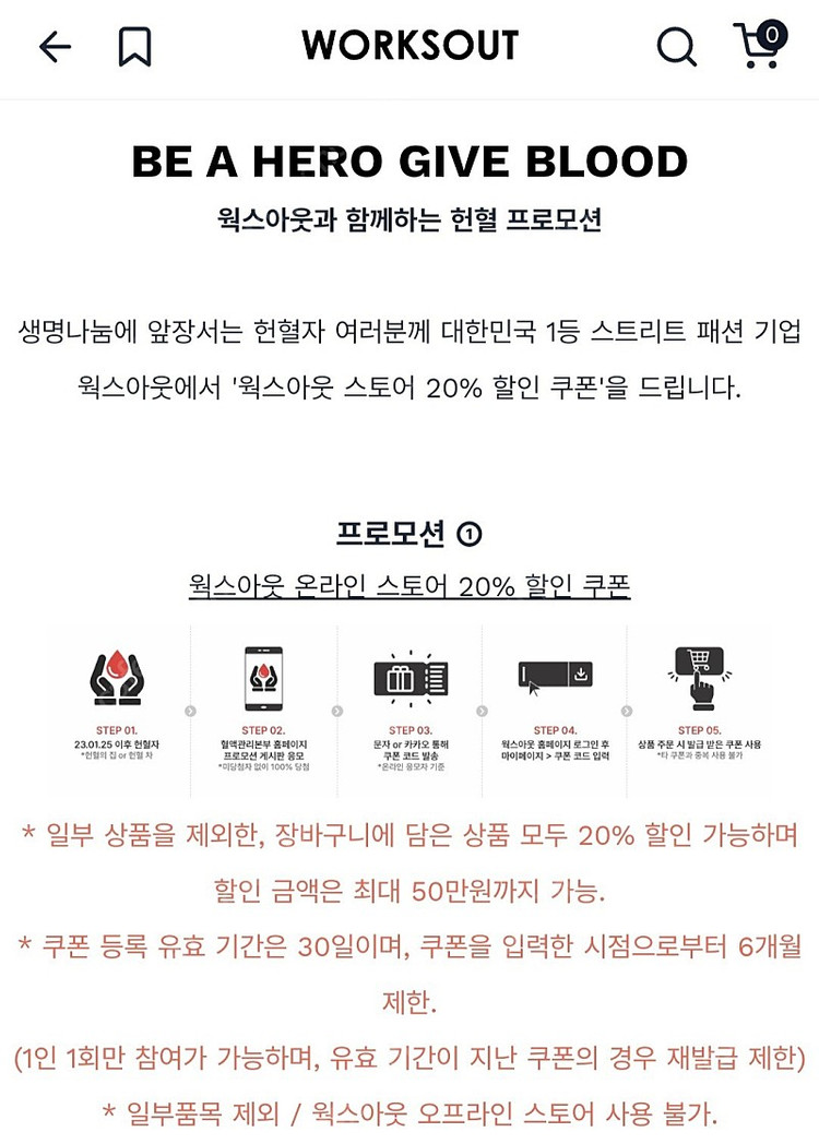 웍스아웃(WORKSOUT) 온라인 스토어 20% 할인 쿠폰 입니다. 빨간색으로 된 주의사항 잘 확인하시기 바랍니다. 구입하시고 쿠폰코드 전송 받으시면 반품 불가합니다. 구입원하는 분은 채팅주세요.