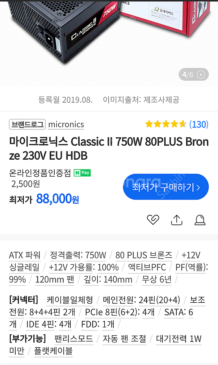 마이크로닉스 750w pc 파워 입니다 20년 51주차로 무상 3년 이상 남았으며 리퍼 교환 후 미사용 상세스펙 사진 참고 안전번호로 연락 바라며 에누리 및 댓글 대부분 무시합니다