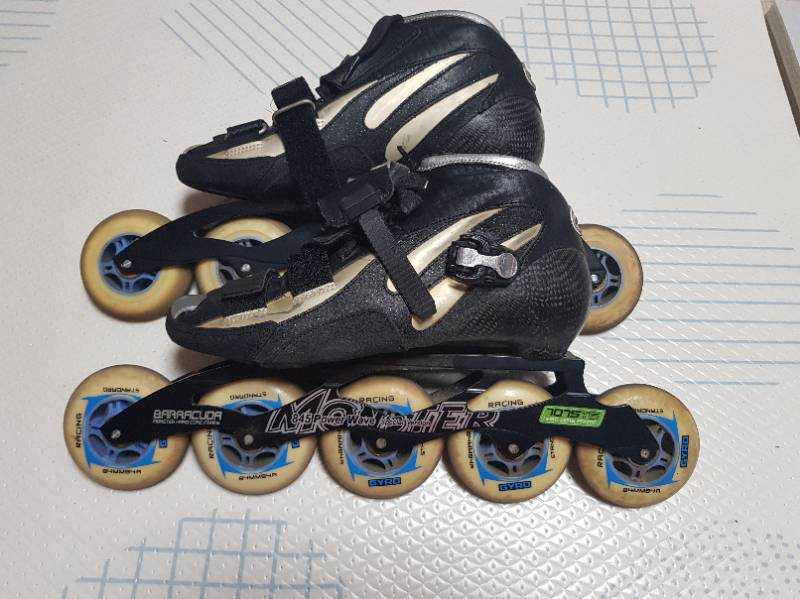 최상급 프레임과 베어링장착과 카본부츠 미세조정 버클과 스트랩으로 편리성확보 발매당시 70만원이상의 고가입니다. 청소를 안해서 좀 지져분한데 새것같이 이쁘고 깨끗하게 청소해놓을께요^^ 성능정말 최고중에최고 입니다. 01038174542. 문자로주세요..