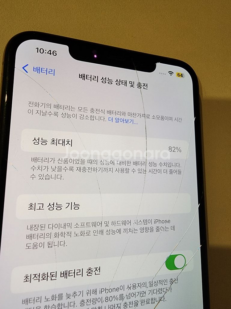 앞액정 금이가서 좀 저렴합니다 테두리 작은 찍힘 조금 있습니다 뒤면은 깨끗합니다 사용하는데 작동 잘하고요 고장부위는 없습니다 그냥 사용하는데 문제는 없습니다 아이폰11프로 맥스64기가 배터리 82% 박스만 있고요 폰과 박스만..드립니다. 앞강화유리 한장붙이시고 사용하시거나 액정교환해보세요~