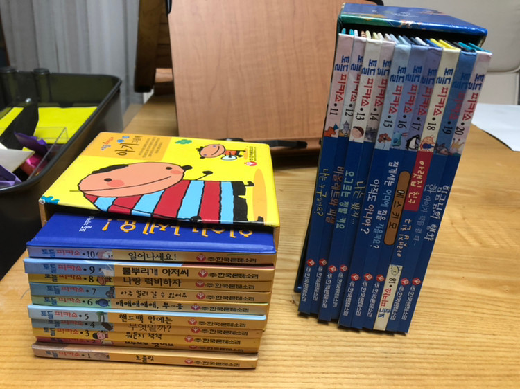 2011년 구매한 토들입니다. 유명한 전집이니만큼 활용연령대가 넓어요. 사용감 있으나 오염 찢어짐없어 잘 활용하실 수 있을거에요. 택배는 착불 4천원입니다.
