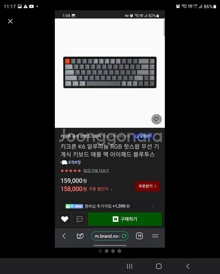 키크론 K6 알루미늄 RGB 핫스왑 무선 상태 촤상급 박스그대로 있어요
