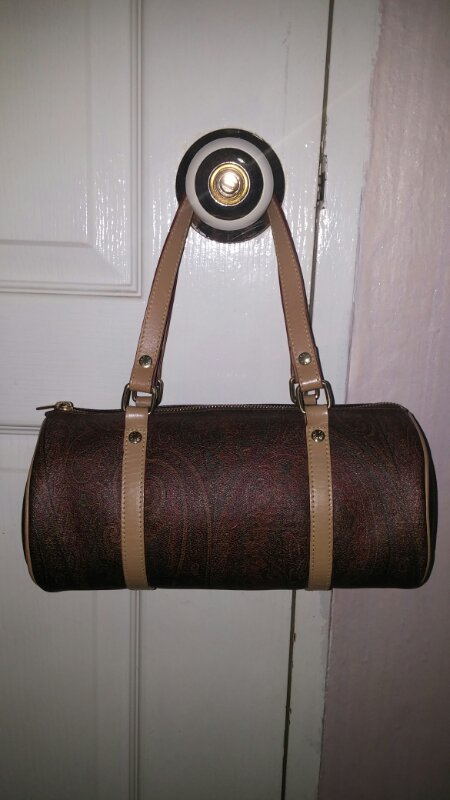에뜨로 정품입니다. 외관은 새상품처럼 아주 깨끗합니다. 가로 26cm.세로13.5cm.폭12cm. 끈포함 전체높이 30cm 원형이라 정장.캐주얼 다 잘아울려요. 가볍고.물건도 많이 들어가요. 가방이 많아서 하나씩 정리중입니다.