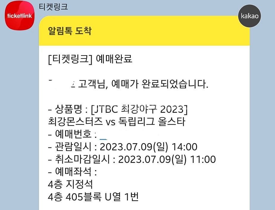 최강야구 몬스터즈 vs 독립리그 올스타 내야 4층 지정석 단석 각각 양도합니다. - 내야 4층 424블록 F열 18번 2.5만원 - 판매완 - 내야 4층 405블록 U열 1번 3.0만원 거래방법은 자정에 티켓링크 선물하기로 보내드립니다.