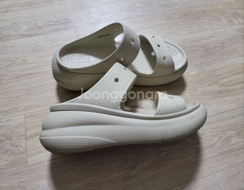 *제상점-크룩스 샌달과 같이구입시-60.000. *크룩스 코리아(정품) -품명-클래식 크러쉬. -공용. -가볍고 편안함. -싸이즈-245mm(M5/W7) -구입가격~72.300. http://mitem.gmarket.co.kr/Item?goodsCode=2957694590&jaehuid=200006220 -마트갈때 실착2회. -하자없음. -반품/환불X. -부산 구서1동 직거래가능.