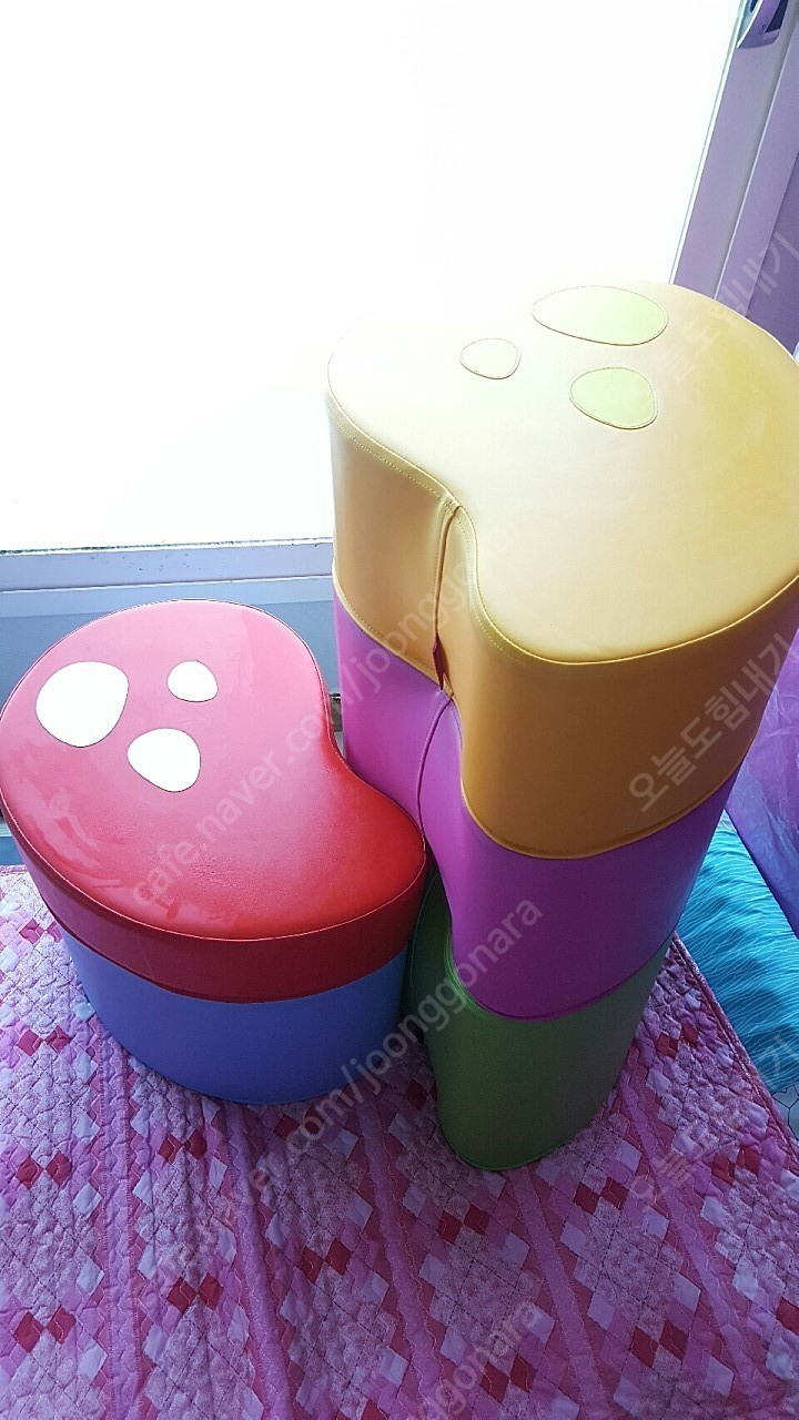 1️⃣ 앱과 카페 연동하고 네이버페이 3천원 받으러 가기! 2️⃣ 거래 전 사기 조회하기! 3️⃣ 불법/사기 거래글 신고하기! 게시글 위 [...더보기] 버튼을 눌러 확인해 주세요. 오르다 폼 쿠션 5종이구요 손잡아주고 징검다리 놀이도 가능하고..쿠션의자로도 사용가능합니다 색감도 선명해서 색상공부 할수 있고요 높고 낮음도 가르쳐줄수 있어요 일단 대근육 발달에 좋아요~들고 옮기며 놀아도 되고 밟고 노는것도 가능하고요 물티슈로 닦고 바로 찍어서 얼룩져보이네요;; 부피 있어 직거래 원합니다~시흥시 대야동 천주교회쪽에서 거래원합니다 010-4667-0106 으로 연락주세요