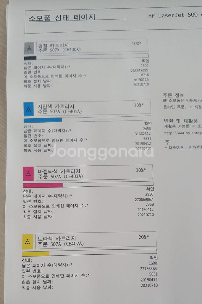 HP 컬러레이져 M551n A4 컬러레이져 프린터.. 속도 32ppm (A4), 33ppm (Letter 크기 ) 유선네트워크/ USB 재생토너 4색 1세트 같이드립니다.. 직거래 , 택배 (착불) 가능합니다.. 필요하신 분 연락주세요.. *** **** **** 입니다..상품 정보 내 개인정보는 자동 보호됩니다. 안심결제로 안전하게 거래하세요.