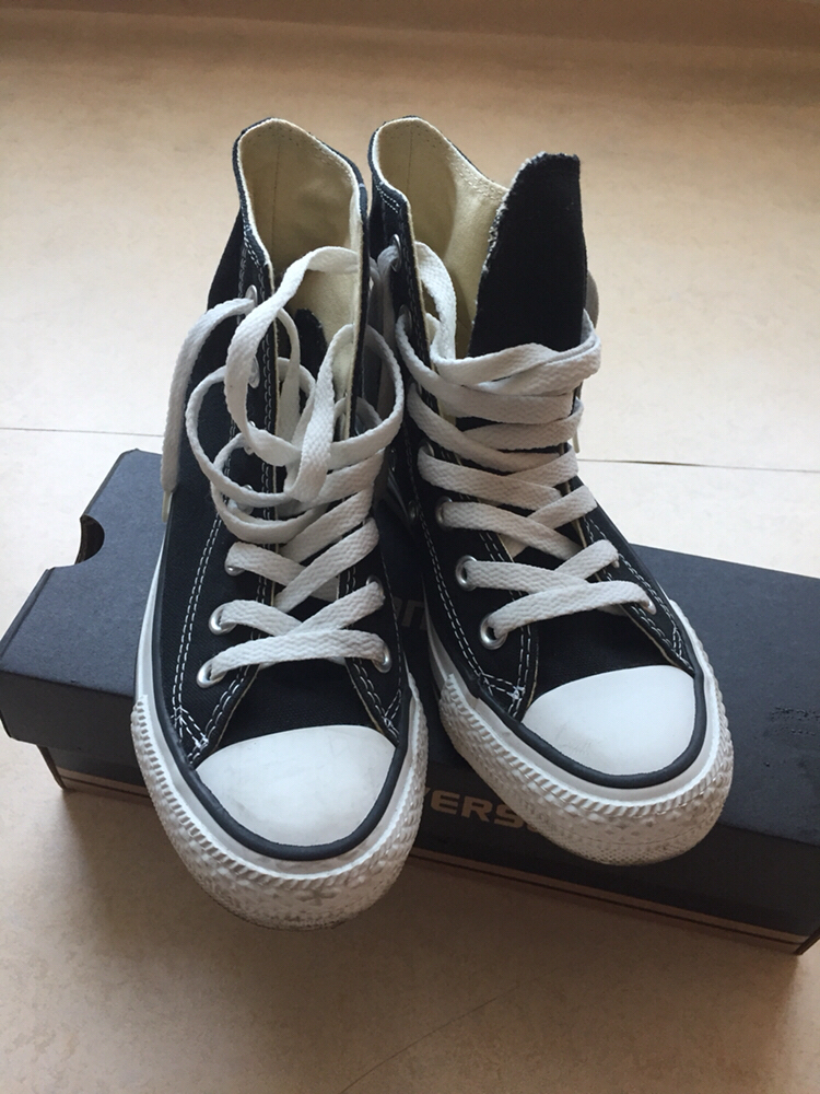 컨버스 하이 블랙 220 한 번 신었는데 사이즈 미스로 팔아요ㅠㅠ 상태 매우 깨끗합니다😂 13000에 팔아요! 궁금하신거 연락주세요! (박스는 제가 230으로 다시 구매한거 안버려서 거기 넣어서 보내드립니다!)