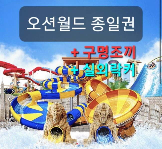 🏄♂️오션월드 골드/하이시즌 종일권 🏄♀️+구명조끼 + 실외락커 골드시즌: ~08.31 까지 하이2시즌: 08.21 ~ 09.10 ------------------------------------------ 1. 골드시즌 종일권 + 구명조끼 + 실외락커 주중/주말 43,000원 2. 하이2시즌 종일권 + 구명조끼 + 실외락커 주중 30,000원 주말 33,000원 ---------------------‐-------------------- •대인/소인 공통 •구명조끼와 실외락커가 포함된 상품입니다. •골드시즌은 주중/주말 상관없이 사용가능합니다. •날짜 지정없이 기한 내 자유롭게 사용 가능합니다. •구매 후 익일부터 사용 가능합니다. •원하시는 갯수 말씀해주세요. •문자메세지로 바코드 전송해드립니다. •바코드전송 후에는 교환이나 환불이 불가능합니다.