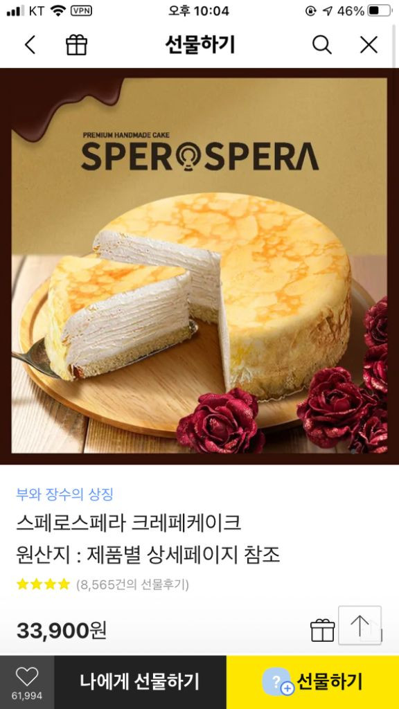 스페로스페라 크레페 케이크33900(카카오선물하기 배송