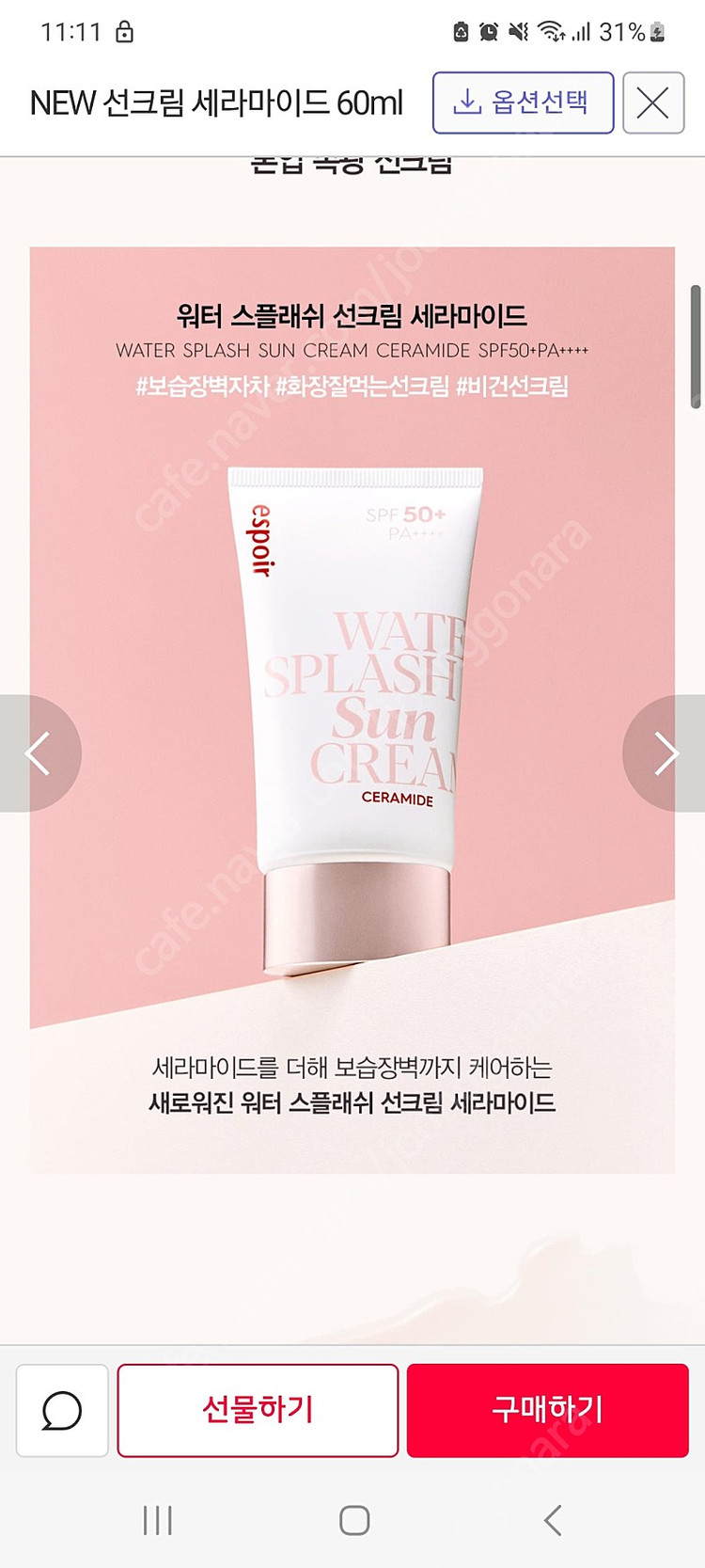 👆중고나라 앱이 있다는 걸 아시나요? 상단 중고나라 앱 다운받기 클릭! 👆앱에서 구매를 원하는 댓글이 달릴 수도 있어요! 더보기 클릭하고 미리 알아두기! ─────────────────── ※ 카페 상품 게시글은 자동으로 중고나라 앱에 노출합니다. 구매를 원하는 앱 회원이 있다면 카페 스태프가 안내드릴 예정입니다. ※ 등록한 게시글이 회원의 신고를 받거나 이상거래로 모니터링 될 경우 중고나라 사기통합조회 DB로 수집/활용될 수 있습니다. 에스쁘아 워터스플래쉬 선크림 세라마이드60ml 1개11000원 2개 21000원에팝니다 유통기한26년 4월까지 cu반값택배시1800원추가 일반택배시3천원추가예요