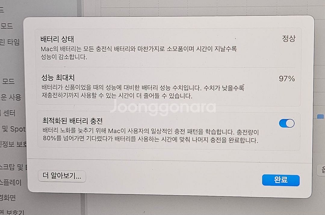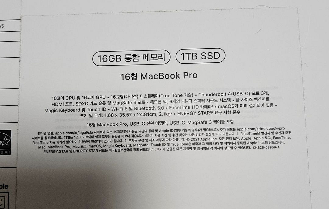 - 모델명: 맥북프로 m1 16인치 16GB 1TB - 사용기간: 배터리 사이클 횟수 54회, 배터리성능 97%로 별로 사용 안함 - 하자유무: 하자 X, 외관 기스 하나없이 상태 SS급 안산 고잔동 직거래 선호합니다.