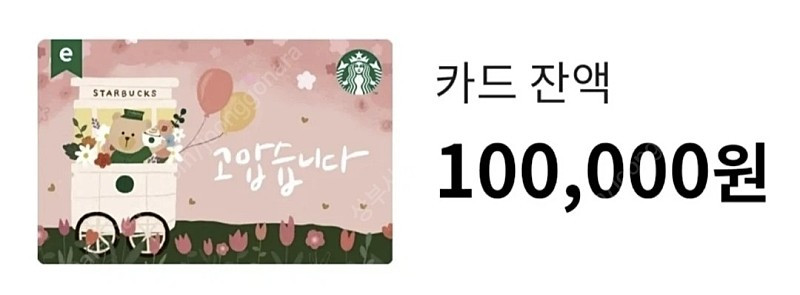 스타벅스 기프트 카드 e-Gift 10만원 90,000원에 판매합니다. 일괄 구매시 개당 87,000원에 판매합니다. 카드번호와 핀번호 제공 네고X