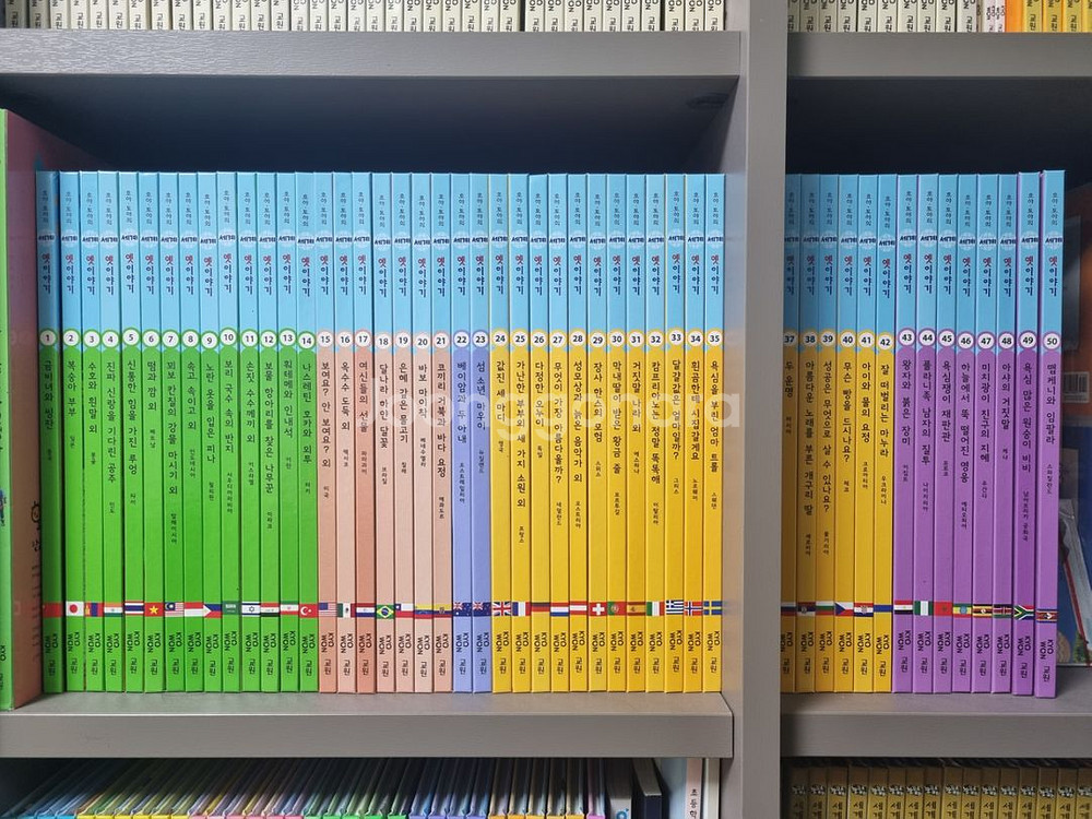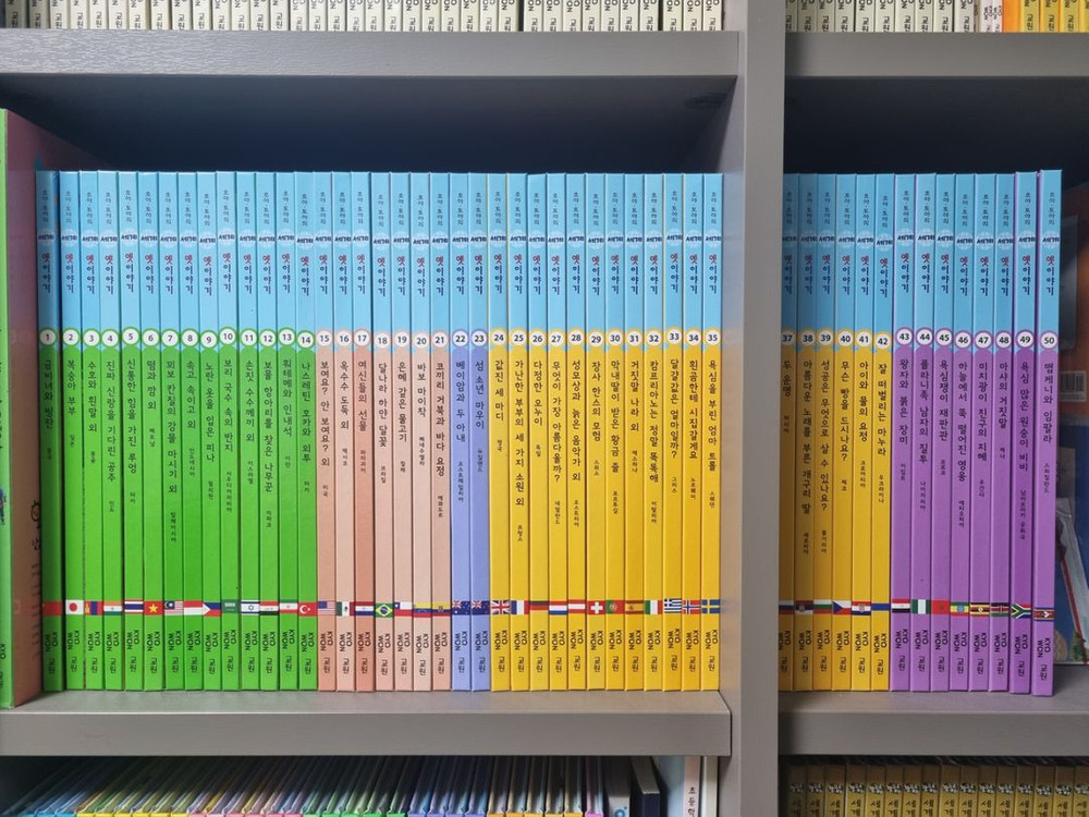 교원 호야토야의 세계 옛이야기 전 50권, nfc 카드 1, CD 15개 상태 최상, 매우 깨끗합니다. 9번부터는 미사용 (4년 전 구입) 학습관리 시트지 5회~24회 포함 (내용이 아주 좋아요)