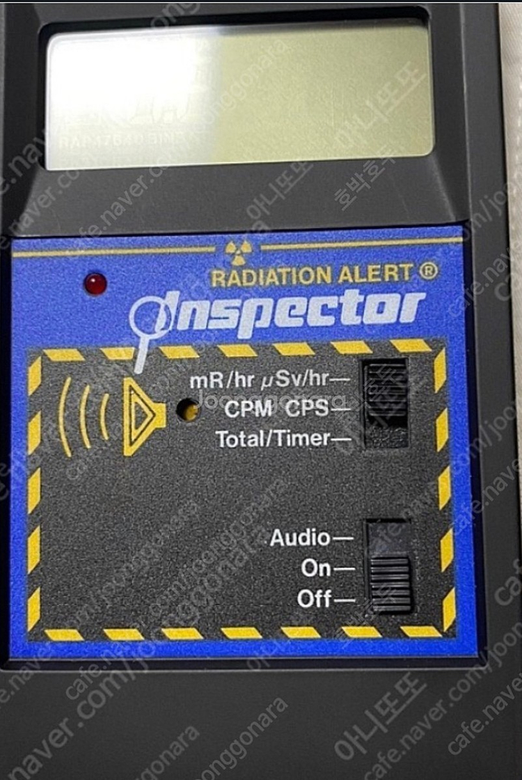 개인정보(거래정보)를 주고받는 행위는 사기에 노출될 수 있으므로 즉시 중고나라로 신고해 주세요방사선 측정기 거의 세제품이라 보시면 됩니다. 단위는 uSy/h, mR/h 등입니다. 측정량이 많아 질수록 알람음이 빨라집니다
