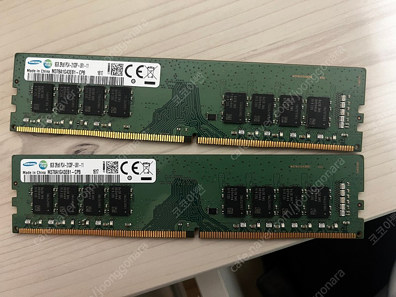 컴퓨터 교체로 삼성 RAM 램 8GB 2133 DDR4 2개 일괄 판매합니다. 직거래 강원도 원주 택포 가격입니다! ※ 카페 상품 게시글은 자동으로 중고나라 앱/사이트에 노출합니다. 노출을 원하지 않으실 경우 고객센터로 문의 바랍니다. ※ 등록한 게시글이 회원의 신고를 받거나 이상거래로 모니터링 될 경우 중고나라 사기통합조회 DB로 수집/활용될 수 있습니다. ─────────────────── 📢 제목에 "제조사/ 브랜드 명"과 "상품명(ex. 맥북 에어 13)”를 넣어 작성하면, 보다 빠른 판매가 가능합니다! 📢 게시글 작성 시 배송 방법에 “직거래”와 “내 위치” 설정할 경우, 보다 빠른 판매가 가능합니다!