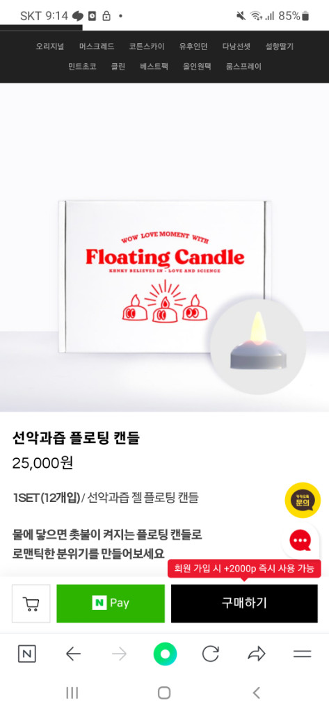 개인정보(거래정보)를 주고받는 행위는 사기에 노출될 수 있으므로 즉시 중고나라로 신고해 주세요새상품 플로팅 캔들이고 선악과즙이랑 쓰면 진짜 예쁩니당ㅍ 반택 +2000 일백 +3800 추가됩니다. 직거래는 부천에서 합니다