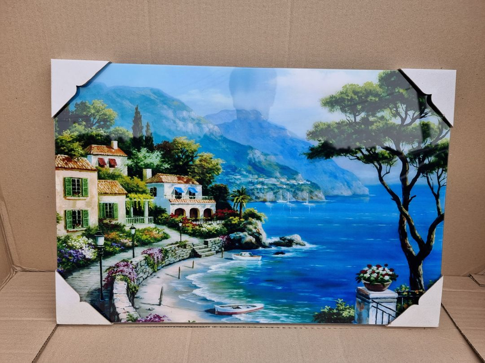 유럽 호수가 풍경 그림 액자입니다. 국산제품. 새상품입니다. MDF합판에 레이저 출력. 표면은 아크릴 마감. 창고정리 땡처리 가격입니다. 가로 60 세로 40 두께 2 직거래 종로구, 경기도 일산 인근 가능합니다.