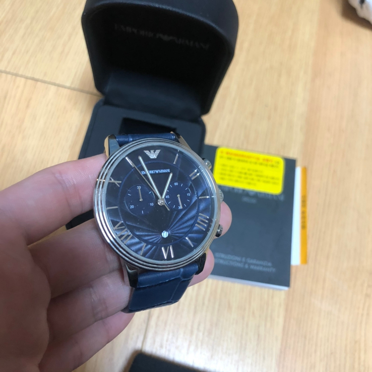 알마니 가죽시계입니다! 개봉후 책장에 박아두다가 한번 착용했구요. 상태 아주 좋습니다. 기스 가죽구김 없습니다! 롯데면세에서 구매했구요 10만원에 처분합니다! 책자 보증서 케이스 같이 드립니다! 010 4762 9550 연락주세요