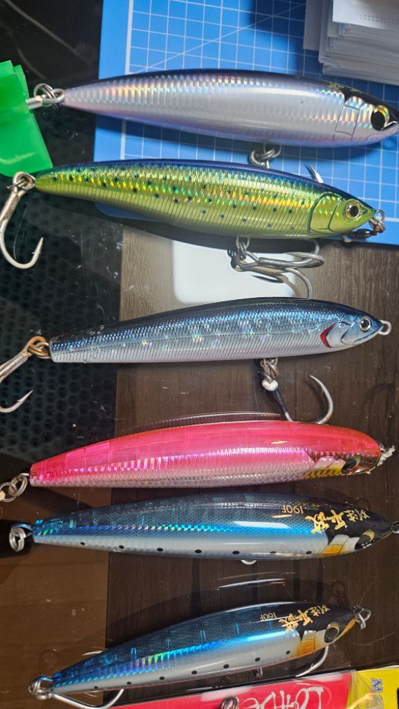 마리아 180mm 3개 다이와 히라마사 1개 오시아 펜슬 185f 85g 2개 시마노 평정 190f 2개 160f 1개 시마노 헤드딥 175f 1개 총 10개 훅 포함 몽땅 200,000원 연락처 01052554233 문자 주세요 직거래는 분당 입니다