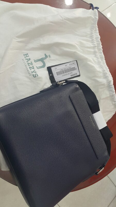 헤지스 남성 네이비 로고 가죽 크로스백 새상품