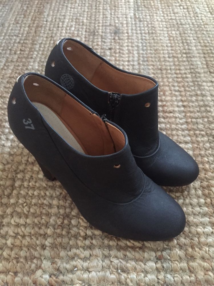 메종 마틴 마르지엘라 22 블랙 레더 앵클 부츠 37 사이즈입니다. 사이즈 37과 글로벌 마크가 사이드에 래터링 되어있는 독특한 디자인입니다. 착용 3회 미만으로 상태 매우 좋습니다. 문의 주세요.