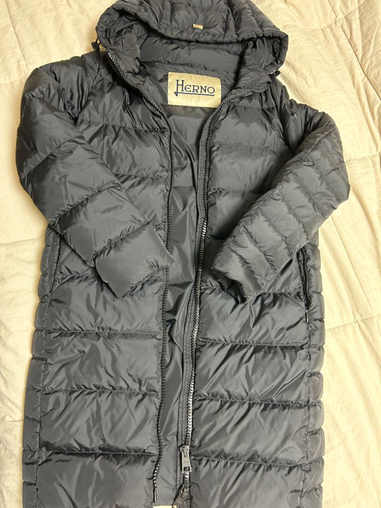 에르노 구스패딩입니다. 42사이즈로 66추천드립니다 착용시(165cm) 무릎위까지 오는 기장으로 후드 탈부착가능합니다. 에르노 특성상 무지 가볍고 따뜻합니다