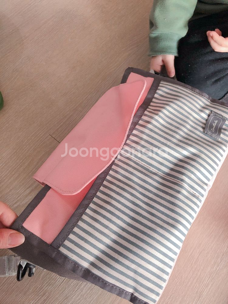 가방에 한두번 정도 넣어 사용했습니다 깨끗해요 양옆 고리가있어서 유모차 정리함으로도 사용 가능합니다