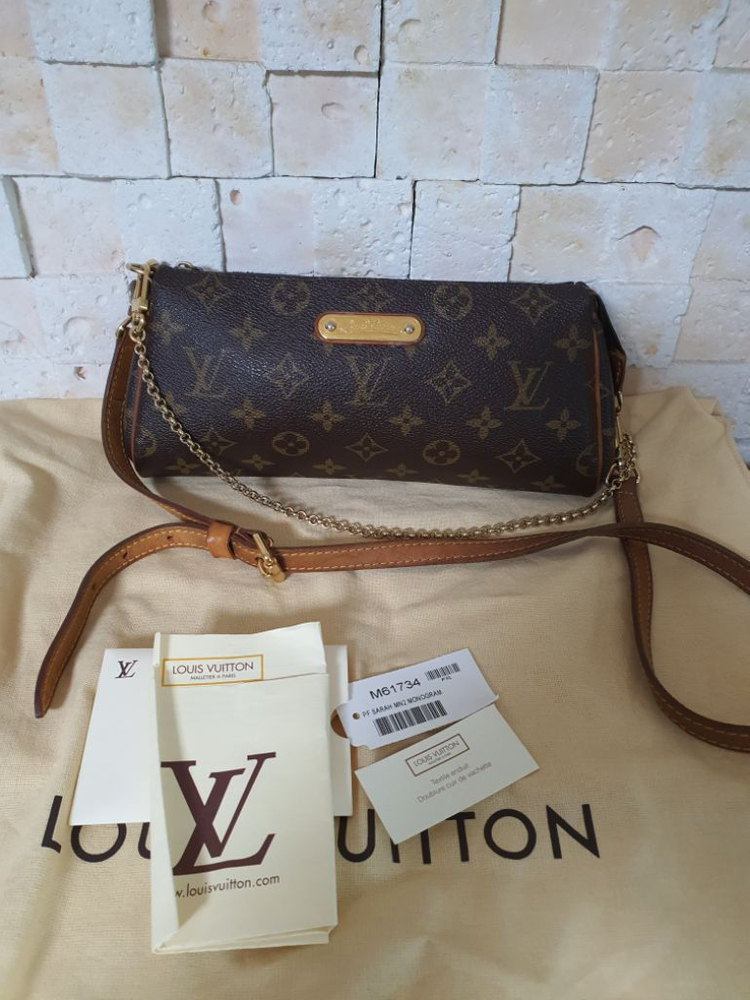 루이비통 에바클러치 정품입니다. 한쪽 수선해서 사용했는데 거슬리면 다시 명품샵에서 수선 하시면 됩니다. 매장 as유료 가능 할겁니다.보증서만 있습니다.가죽스트랩은 아주 길지 않아요. 편하게 사용하는데는 문제없지만 사용감은 존재하니 신중히 구매하세요. 중고특성상 정품아닐시외 교환환불 안됩니다.