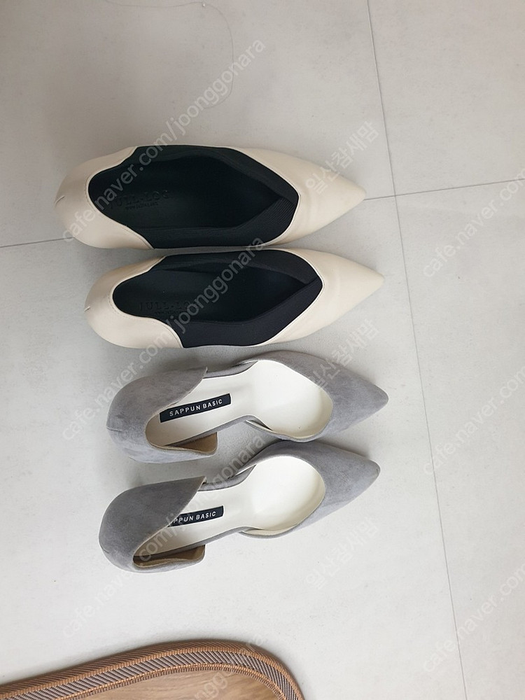 ※ 카페 상품 게시글은 자동으로 중고나라 앱/사이트에 노출합니다. 노출을 원하지 않으실 경우 고객센터로 문의 바랍니다. ※ 등록한 게시글이 회원의 신고를 받거나 이상거래로 모니터링 될 경우 중고나라 사기통합조회 DB로 수집/활용될 수 있습니다. ─────────────────── 📢 제목에 "제조사/ 브랜드 명"과 "상품명”를 넣어 작성하면, 보다 빠른 판매가 가능합니다! 📢 게시글 작성 시 배송 방법에 “직거래”와 “내 위치” 설정할 경우, 보다 빠른 판매가 가능합니다! 싸이즈 미스로 내놓아요 둘다 245써있는데 발볼이 있는 저는 둘다 안맞네요 그레이색 구두는 새거에요 줄로그보다 더 작은것 같아요 240신으시는 분이 맞으실것같아요