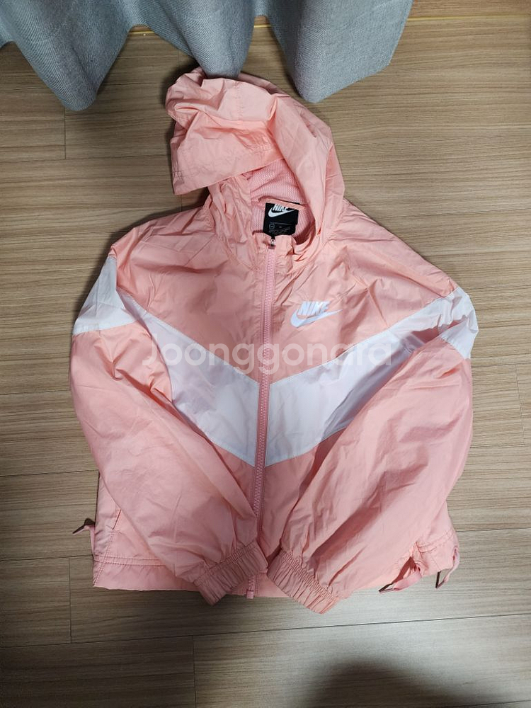 나이키 여아 바람막이 색깔도 예쁘고 상태도 양호합니다. 사이즈는 M 입니다. 덤으로 토토하어로 바람막이 같이 드립니다. 여성스럽고 예뻐요. 로고 큐빅은 좀 떨어졌고 보관과정에서 구김 있지만 옷은 예뻐요.