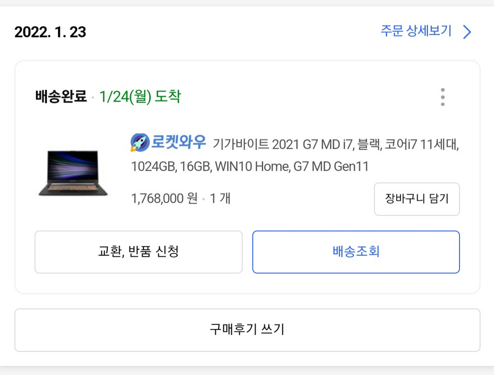 노트북 22.1월 23일 구매 할인 후 실 구매가 1,768,000 총 한달 사용 기가바이트 게이밍 G7 MD 블랙 17 • 코어i7 11세대 • 1024GB • 16GB • WIN10 Home • 3050ti 2021.05 출시 프로그램은 롤,큐베이스만 사용했고 주로 컴퓨터로 작업해서 판매합니다. 노트북 파우치도 드려요. 백팔십에 구매해서 마음이 아프네요... 말도안되는 네고를 계속 하시는데 적당히 해주시길 바랍니다. 상세정보는 사진에 포함하였으니 확인후 연락 부탁드립니다. 구매처 링크 https://link.coupang.com/a/bk5iqi