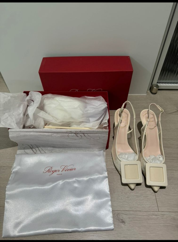 예물신발로 유명한 로저비비에 풀구성입니다. 강남 신세계에서 구매했구요. 와이프가 구매후 한번도 착용하지 않았습니다😳😳 공홈 1,370,000원이고 구매후 바로 밑창 보강 했습니다. 사이즈는 37 1/2 입니다. 직거래 선호합니다.