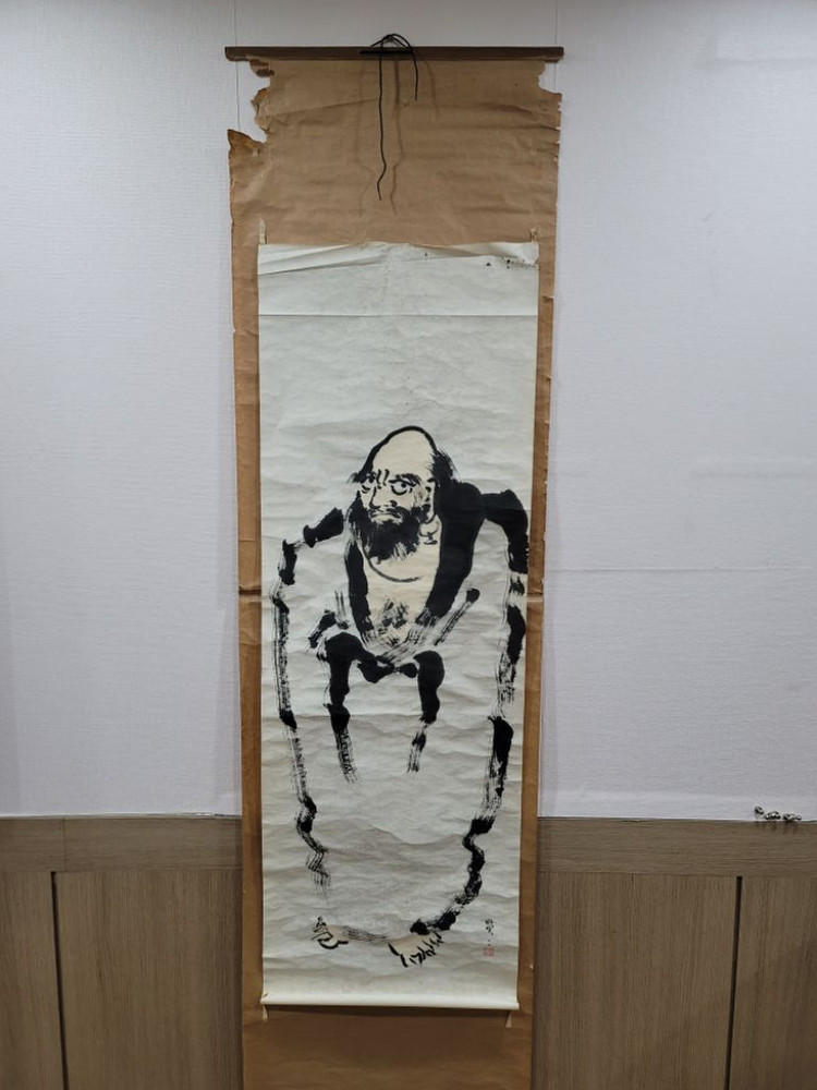 그림 크기 136×46 달마 그림 고화입니다. 수묵으로 직접 그린 작품으로 최소 80여년 이상 된 골동 그림입니다. 족자에 표구하지 않고 일부만 부착 된 상태로 보관되어 오던 상태입니다. 구입후 족자나 액자형태로 구성하셔야 합니다. 작가는 수결이 있으나 미확인으로 판매합니다. 족자배지는 많이 탈락 된 상태이나 그림은 잘 보존되었습니다. 택배비는 무료로 저희가 부담합니다. 도서, 제주도, 대형기물, 퀵이나 용달이 필요한 기물은 별도 협의해 주세요.