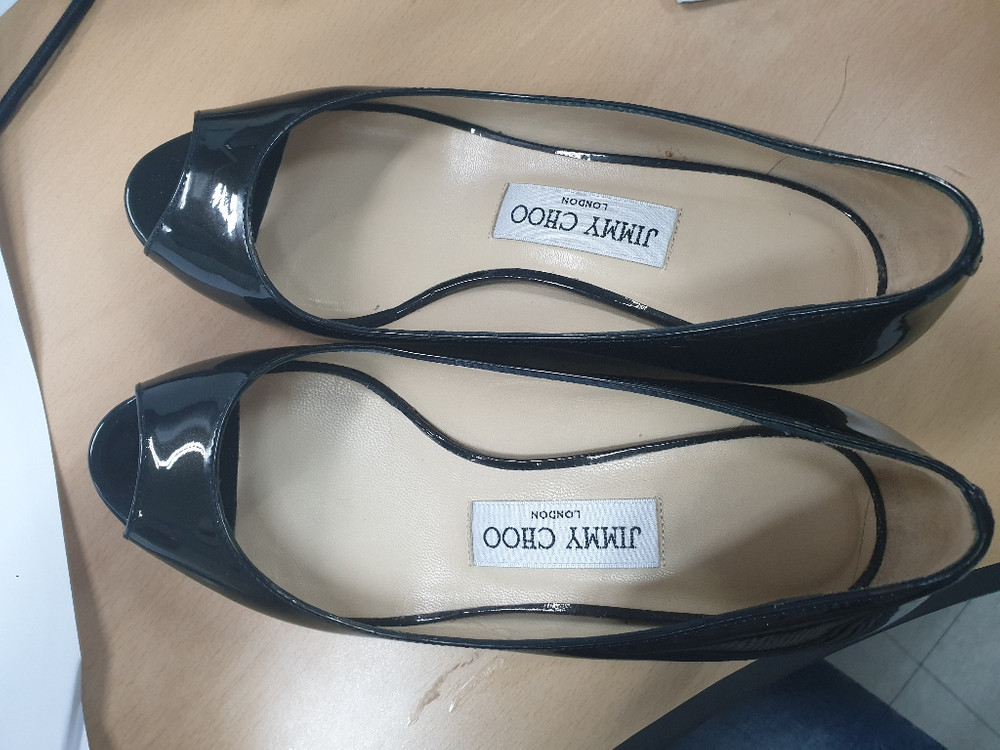 지미추 36반 사이즈 웨지힐이예요. 정235입니다 발볼이 넓어서 이건 사이즈미스로 한번신고 보관만했어요. 상태좋아요.