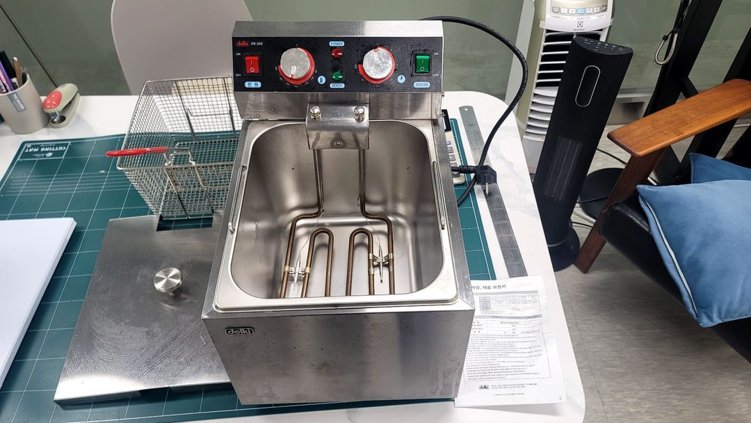 델키 DK-260 튀김기입니다. 쿠팡에서 작년 2023년 6월에 구매하고 한번 기름넣고 감자나 여러가지 튀겨보고 귀찮아서 기름뺐네요 일주일정도 사용한듯합니다. 특이사항은 없고요 필요하신분 연락주세요