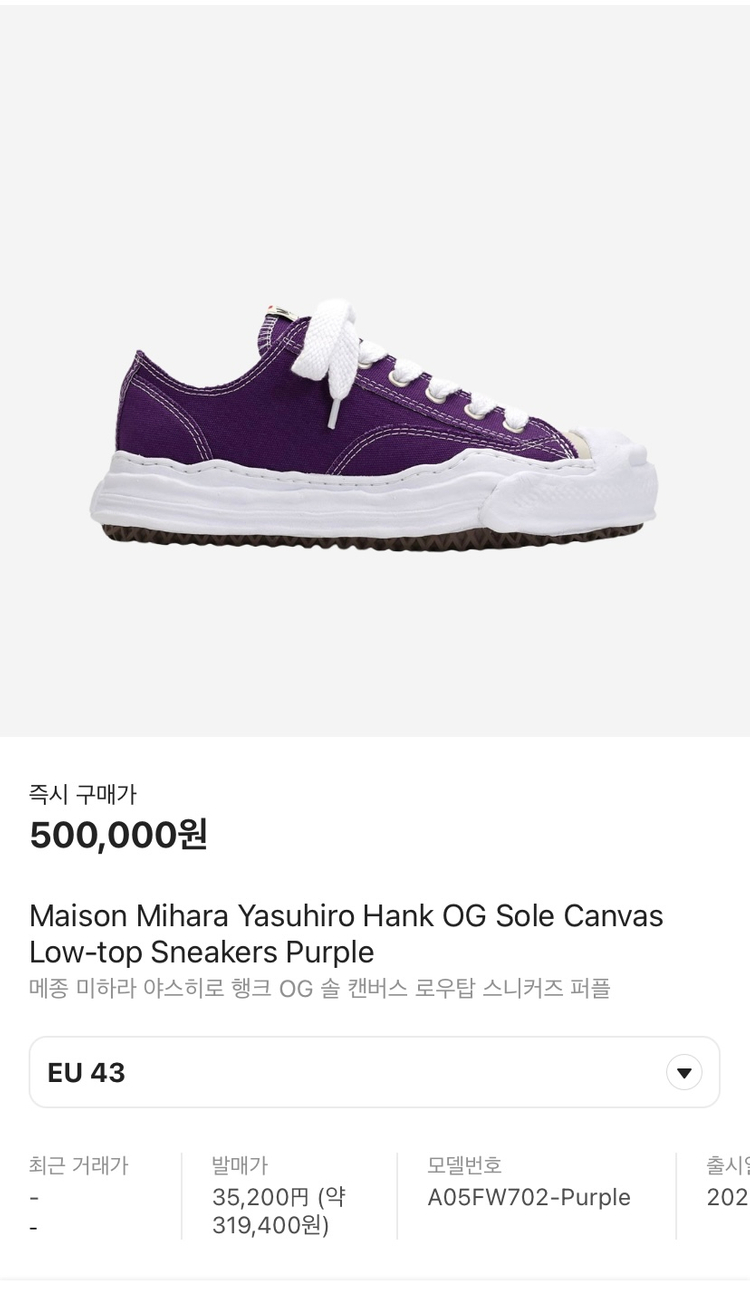 미하랴 야스히로 43EU 사이즈 판매합니다. 공홈에서 구매했으며 완전 새제품이고, 사실 의향 있으시면 실물 사진 자세하게 보내드립니다. (일본에서도 구매 당시 물량이 많지 않아서 크림에도 재고가 별로 없습니다.)