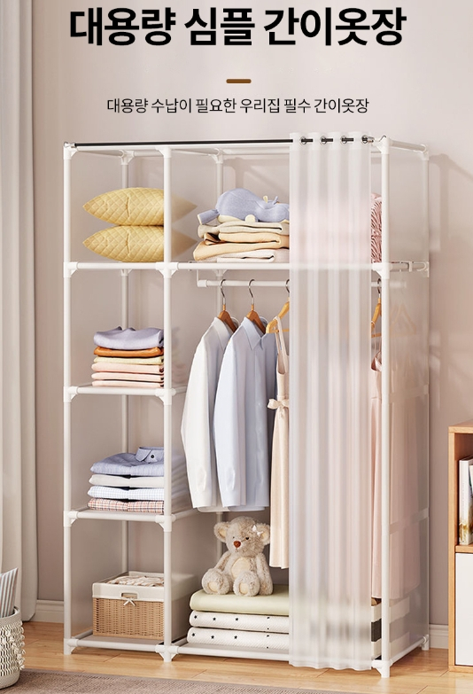 가구있어에서는 생활하는데 있어 편리한 여러 물건들을 많이 연구해보고 선보일테니 많은 관심 부탁드립니다 :) ✅사은품 : 옷걸이 중첩 걸이 5개 / 고무망치 1개 ✅각종 부품 및 커튼 포함 ✅두꺼운 옷걸이 프레임 ✅색상 : 화이트 / 블랙 ✅사이즈는 이미지를 참고하세요 :) ✅가격 : 36000원 ✅오전 11시 이전 주문시 당일 배송!