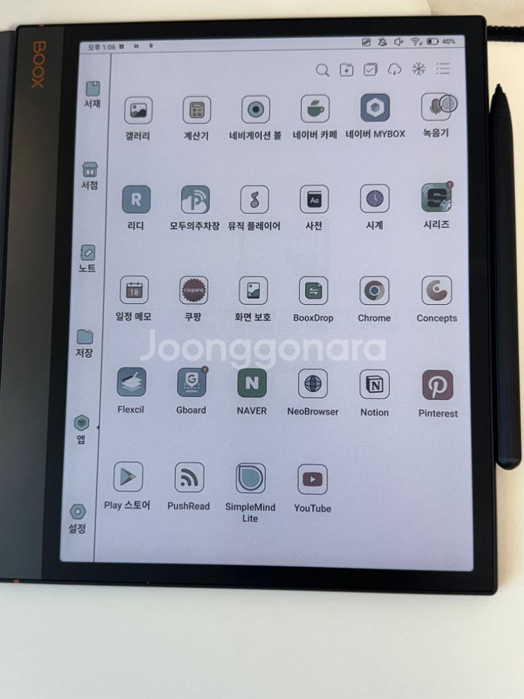 1월27일 배송 도착해서 약 1주일정도 사용했습니다. 받고서 불량화소 체크 어플 돌려봤는데 불량화소 하나도 없는 양품이었어요. 다만 이 제품을 받고서 제가 생각보다 책을 안읽는다는 사실을 알게됬습니다... 필요하신분에게 잘 전달되길 바랍니다 ㅜ 펜, 충전케이블, 박스, 마그네틱 케이스 구성이에요. 기본펜도 있긴한데 원하시는 분은 라미알스타s펜도 같이 드립니다. 직거래는 범계에서 가능하고 택배 거래 시 택배비는 제가 부담합니다.