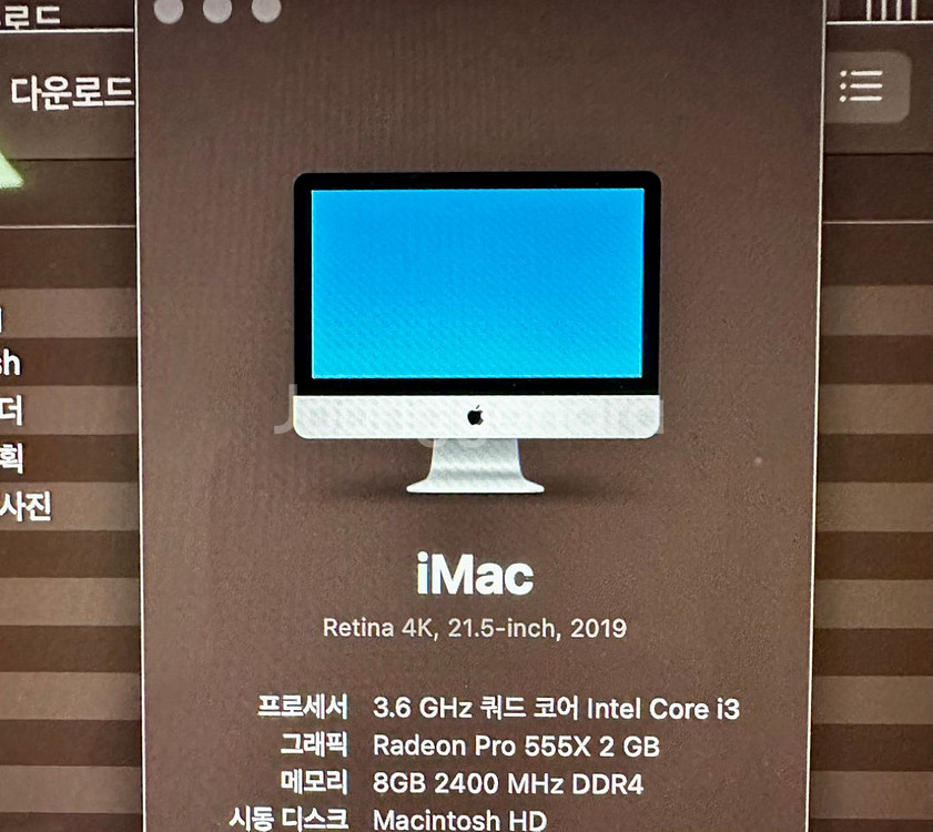 애플 아이맥 2019 3.6 GHz 쿼드코어 라데온 프로 메모리 8GB SSD 512GB A+ 관리 상태 구성품 본체, 키보드, 마우스 (박스 포함) 기존에도 사용이 별로 없었는데 맥북에어를 구매해서 더욱 쓸일이 없게되어 매물로 내놓습니다