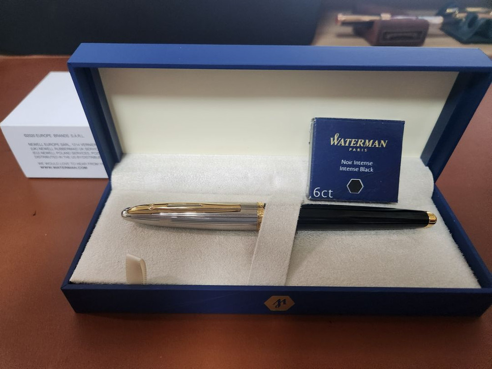 1. 제품명: 워터맨 까렌 GT 디럭스 블랙(F촉) 만년필 2. 상태: 2회 사용 후 보관(현재 펠리칸 4001 바이올렛 잉크 주입 상태) 3. 구성품: 워런티카드, 박스, 만년필, 잉크카트리지(미사용) 3. 참고사항 - 촉 분할상태 좋으며 그냥 새제품이라고 생각하시면 됩니다. - 택배비 포함 가격입니다.