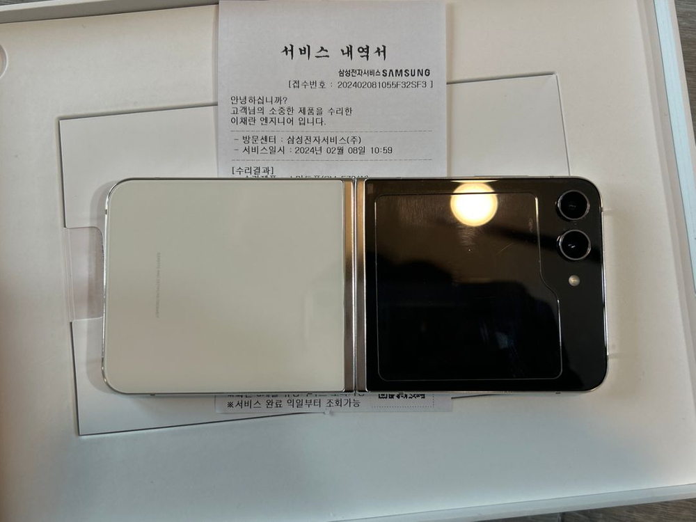 작년 8월에 구매한 z플립5 512기가 입니다 2월8일날 액정,배터리.테두리 전부 새걸로 교체한 후 사용 안하고 보관만 하고 있습니다 아이폰14프로 배터리 성능 80중 후반 이상으로 추금 없이 교환 원합니다