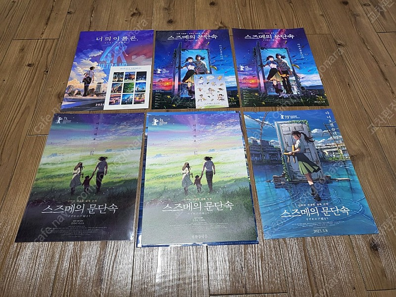 ※ 카페 상품 게시글은 자동으로 중고나라 앱/사이트에 노출합니다. 노출을 원하지 않으실 경우 고객센터로 문의 바랍니다. ※ 등록한 게시글이 회원의 신고를 받거나 이상거래로 모니터링 될 경우 중고나라 사기통합조회 DB로 수집/활용될 수 있습니다. ─────────────────── 📢 제목에 "제조사/ 브랜드 명"과 "티켓명(ex. 스타벅스 아메리카노 Tall) ”을 넣어 작성하면, 보다 빠른 판매가 가능합니다! 📢 게시글 작성 시 배송 방법에 “직거래”와 “내 위치” 설정할 경우, 보다 빠른 판매가 가능합니다! 2월 한정으로 기존 가격에서 쿨거래 또는 직거래 하시는 경우 추가할인 들어갑니다!! 거래 방법 별로 최소 2만원 할인에서 최대 3만원 할인까지 추가할인 많이 많이 해드려요! ☆ 너의이름은 4K 울트라 / 스즈메의 문단속 A3 포스터 6종 2세트 / 1세트당 12만원 ★ 2월 한정 추가 할인 ★ 쿨거래시 / 10만원 (2만원 할인) 직거래시 / 9만원 (3만원 할인) <너의이름은> 4K 울트라 + 스탬프엽서 <스즈메의 문단속> 메인 포스터 + 스티커 <스즈메의 문단속> '어서와요' A3 포스터 + '문' A3 L홀더 <스즈메의 문단속> '어서와요' PET A3 포스터 <스즈메의 문단속> 롯데시네마 한정 A3 포스터 2장 직거래 / 택배거래 둘다 가능해요! 직거래는 서울에서 가능하고, 제가 사는 지역까지 오실 수 있으면 가능해요! 택배거래로 하시면 배송비는 별도 추가됩니다! (착불로 하셔도 상관없어요!)